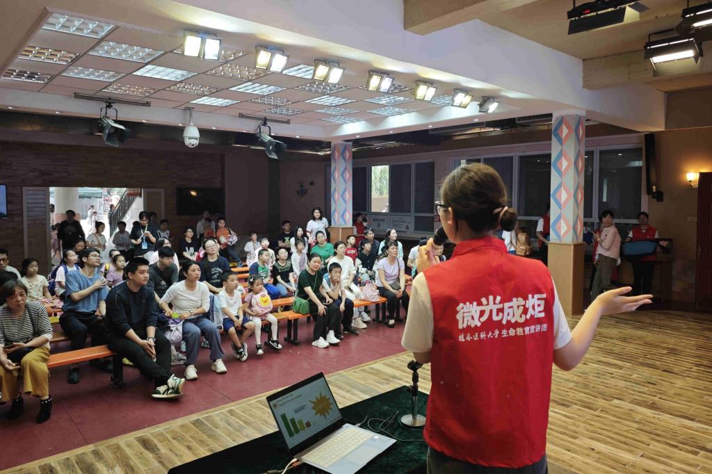 4月19日,桂林医科大学“微光成炬”生命教育宣讲团走进桂林市少年宫,为百余名青少年和家长开展生命教育宣讲。