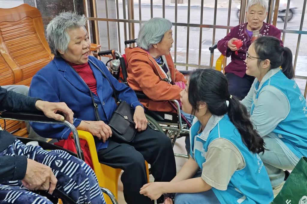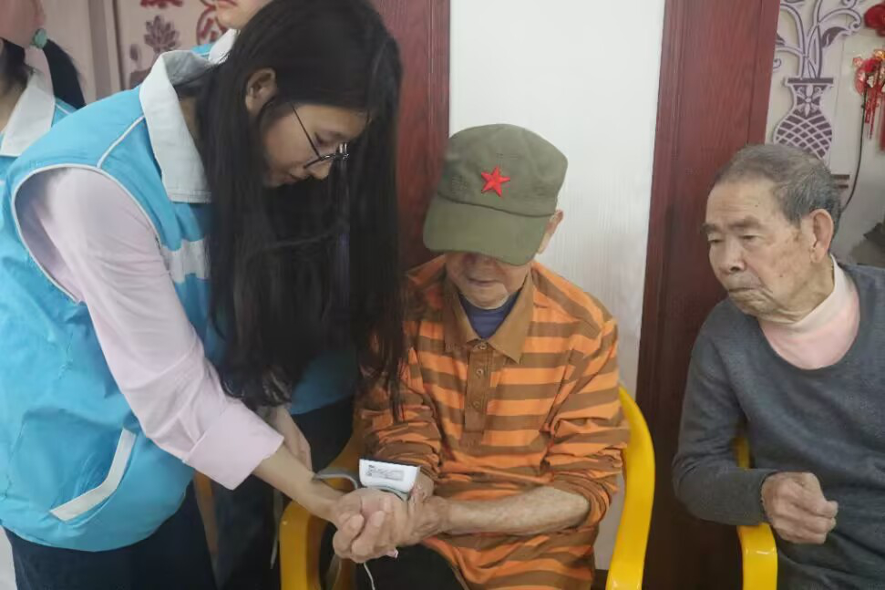 当天,志愿者到达现场并合理分工,志愿者们为老人们测量血压,耐心叮嘱他们注意健康饮食和作息,并耐心的为老人们修剪指甲,陪他们聊天解闷。此外,志愿者们还精心准备《歌唱祖国》《外婆的澎湖湾》等歌曲,老人们跟着旋律一起轻轻哼唱。老人们被现场欢乐的氛围所感染,为志愿者们表演了击鼓、唱歌等节目。现场气氛热烈,欢声笑语不断,温馨的情感在彼此间流淌。