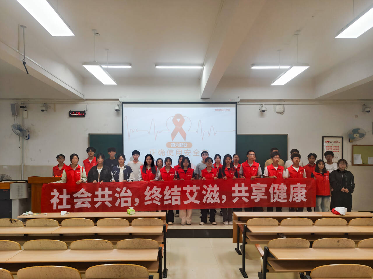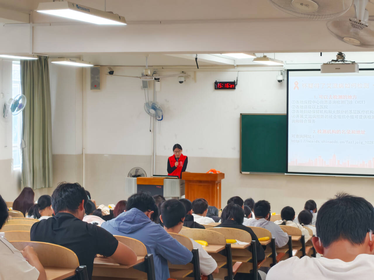 10月19日,桂林医科大学红十字会在临桂校区南楼404教室成功举办艾滋病防治主题宣讲活动,近两百名青年学子积极参与,共同学习艾滋病预防知识。
