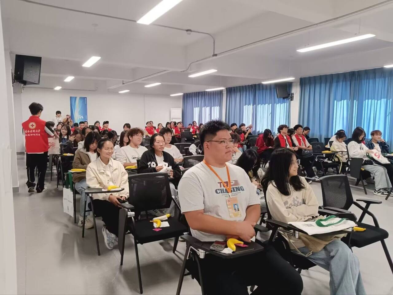 活动伊始,红十字会志愿者为在场师生开展了系统、实用的应急救护技能培训,分步演示与现场实操指导,重点讲解了心肺复苏、成人海姆立克急救法及婴儿海姆立克急救法的关键步骤与操作要领。随后,志愿者结合医学专业知识,系统介绍了艾滋病的发病机制、传播途径、临床症状以及科学预防措施,并现场演示了安全套的正确使用方法,引导广大师生树立正确的健康观念,增强防病意识和自我保护能力。