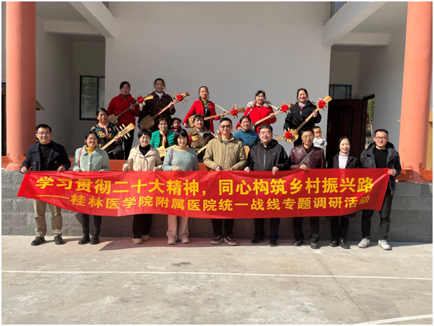 2023年1月10日,桂林医学院附属医院统战部组织民主党派、无党派人士代表赴医院定点帮扶村龙胜各族自治县平熬村开展以“学习贯彻二十大精神,同心构筑乡村振兴路”为主题的调研活动。活动由医院党委副书记蒋尧传带队,各民主党派、无党派人士代表等9人参加了调研活动。