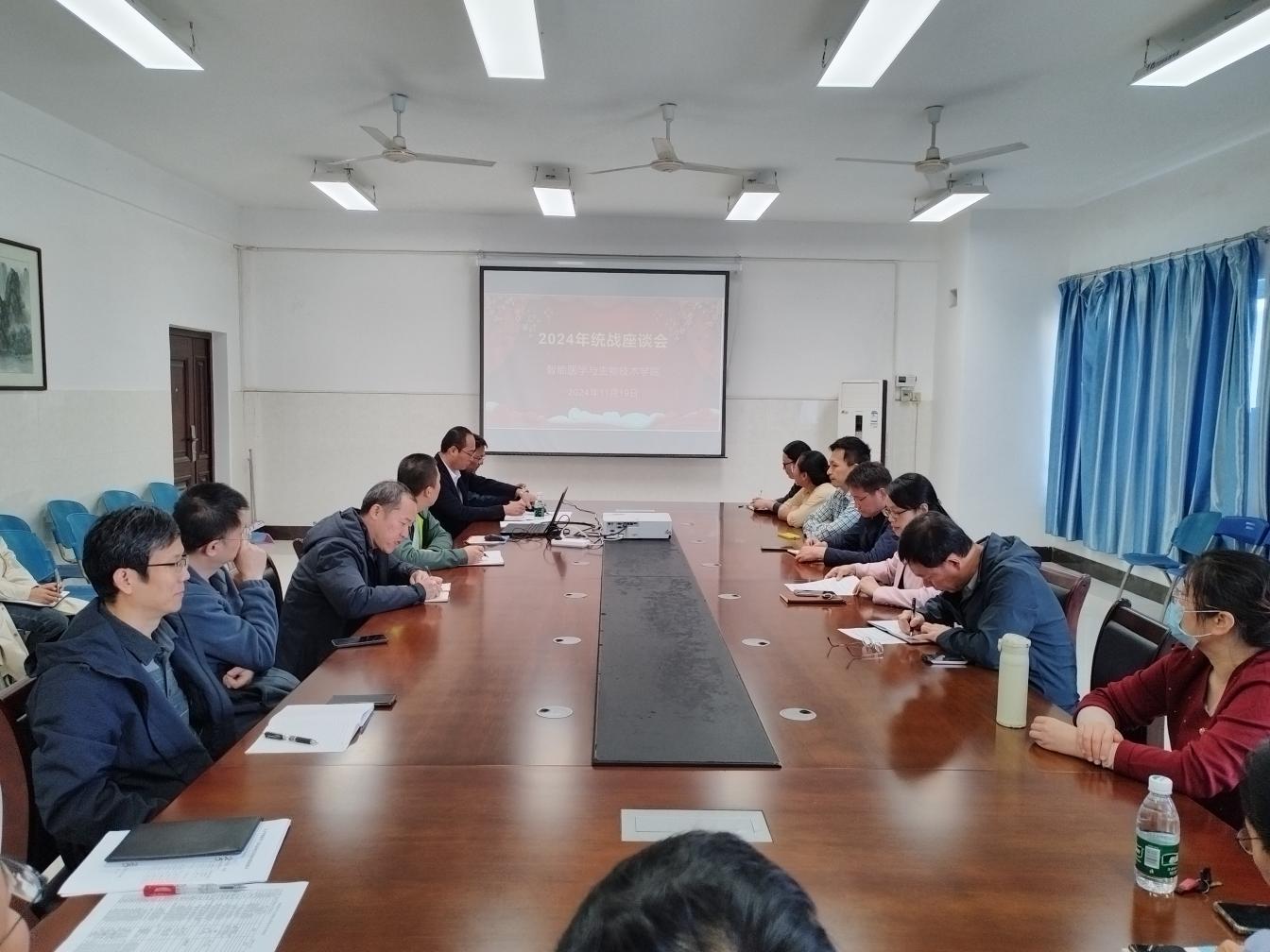 为深入学习贯彻党的二十届三中全会精神,更好发挥统战优势助推学院高质量发展,11月19日下午,智能医学与生物技术学院党委组织召开2024年统战工作座谈会。学院党委委员、党政领导、党支部书记、统战委员、教研室主任、民主党派人士、党外代表人士、2023、2024年新入职教职工、“博士化工程”教师代表参加,会议由学院党委书记黄月圆主持。