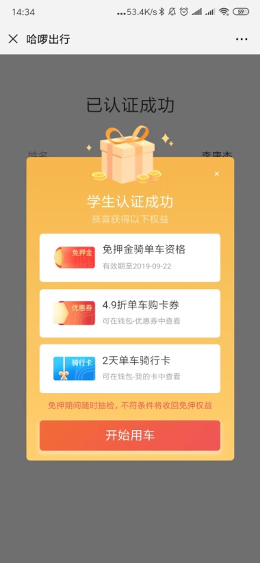考虑到学校师生校内骑行的次数较多,哈啰校园车特意为新老同学们准备了免费骑行卡及5折月卡优惠券!跟着以下步骤完成学生认证,即可享受哈啰校园的学生福利!