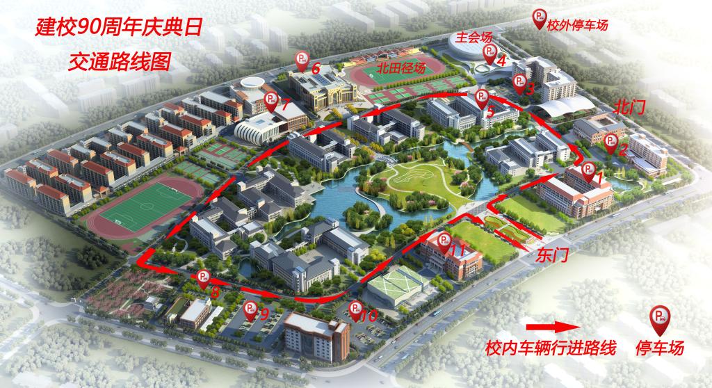 四、所有车辆均从东门入校右转沿校园环道逆时针单向行驶;