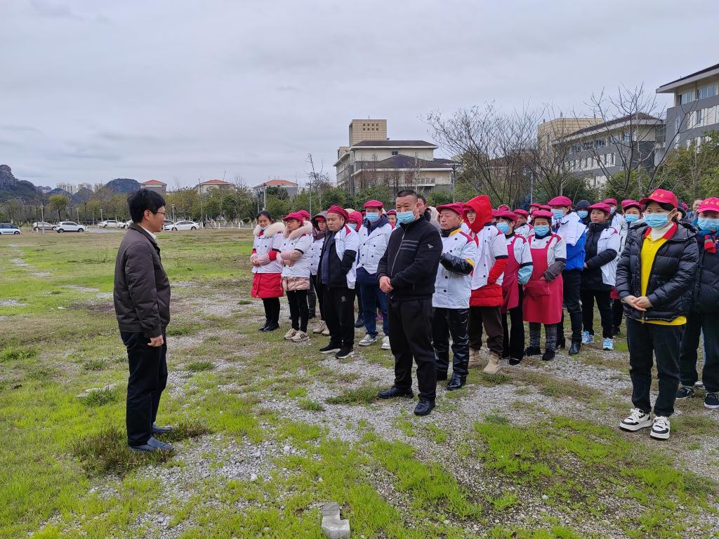 为增强食堂新入职与在职从业人员的防火及消防安全意识,使食堂从业人员掌握应对突发事件的应急处置方法。2月23日下午,学校保卫处、后勤管理处组织临桂校区全体食堂从业人员开展消防安全灭火演练。膳食科管理人员、食堂从业人员约100余人参加消防安全灭火演练。
