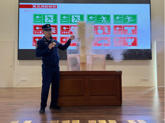 临桂区消防大队的消防员们在国际教育学院一楼报告厅给师生们进行了一次生动的消防知识讲座,深入浅出地讲解火灾预防和应对方法,同时带来了专业的消防设备展示。