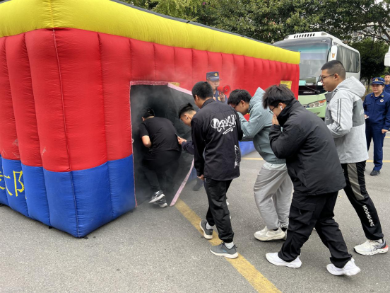 在模拟逃生帐篷演练环节,师生们参与其中,有序疏散,真正体验了一次火灾场景下的逃生。