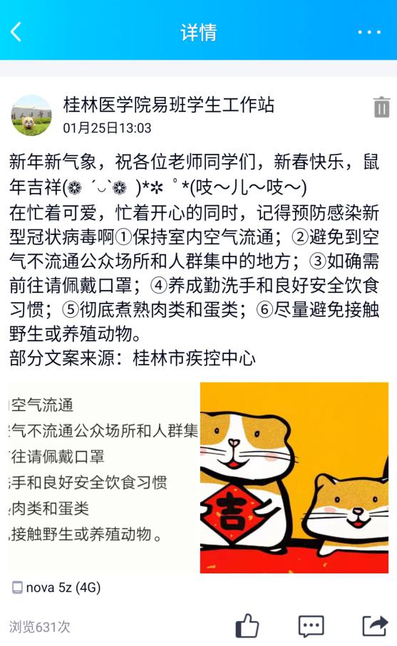 桂医易班积极融入到抗击疫情的宣传工作中,用“云”行动加入到这场抗击疫情的“战斗”中。通过在易班平台宣传的防疫知识,让广大同学了解疫情情况、知识、如何在家中或公共场所实行自我保护。