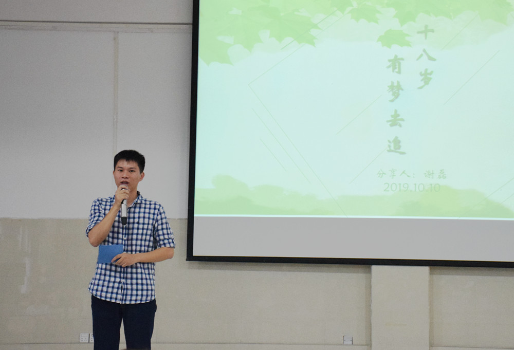 会上,观看了2018年“桂医优秀学子”优秀事迹视频,感受先进榜样的独特魅力。优秀学生代表谢磊(现为我校护理学院专职辅导员),以“十八岁,有梦去追。你的梦是诗,是远方”为主题,与大家分享他的大学生活与奋斗经历。他感言:“没有人想要在年少成为普通人,永远不要停止努力,当你在向曾经想要的自己靠近时,你会多么骄傲。握紧拳头,厚积薄发,念念不忘,必有回响。”这震撼人心的话语激励着现场学子们不负韶华,砥砺前行。退役不退志,退伍不褪色。优秀退伍学生代表黄东华分享:“你有多努力,就有多幸运。”绿军装与白大褂的青春,军人与医生的转换,她能一直不忘初心使命,朝梦想的方向努力前行。她用青春证明了有多努力,就有多幸运!