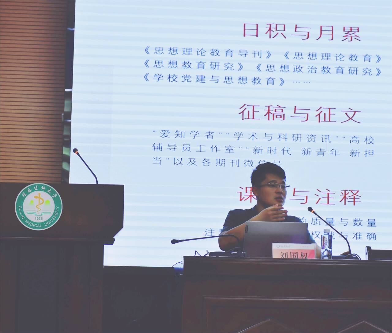 为助力辅导员以学术科研赋能职业能力提升,破解“本领恐慌”,实现“育人育己”双向成长,2025年7月3日上午,我校特邀哈尔滨师范大学融媒体中心主任、传媒学院研究生辅导员、马克思主义学院教师刘国权在临桂校区明德楼101会议室作题为“新时代高校辅导员学术科研能力提升策略探要”的专题报告。学生工作部(处)、研究生工作部全体人员,各二级学院(系)分管学生工作负责人及学校专兼职辅导员参加学习。