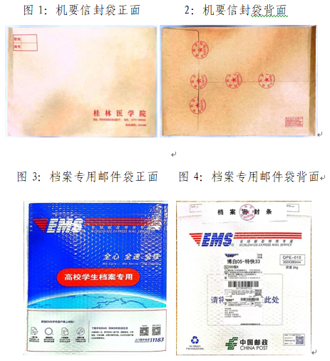 4.核对机要信封袋与档案专用邮件袋信息是否一致后将机要信封袋放入档案专用邮件袋(贴好邮寄单)中封好,并在档案密封条上加盖学生工作处公章;