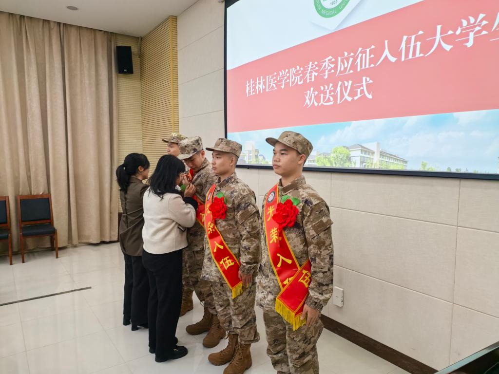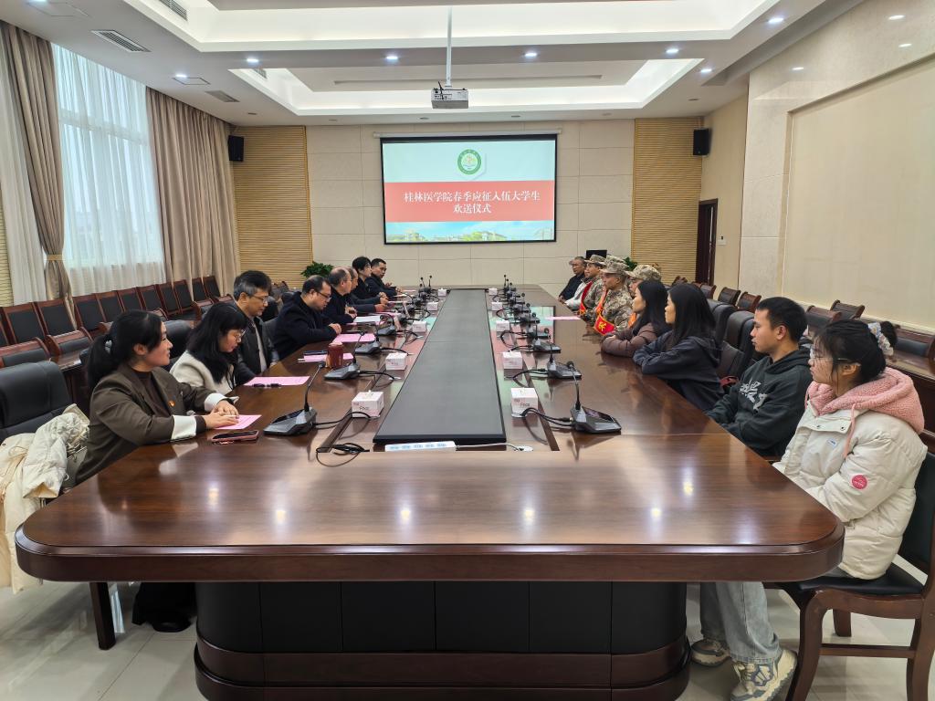 3月14日上午,我校在临桂校区明德楼502会议室召开2025年度春季参军入伍大学生欢送座谈会。学校党委常委、副校长、校征兵工作领导小组副组长覃克强,武装部、学生工作部(处)、校团委等部门主要负责人,入伍大学生所在学院党委副书记及班级辅导员、同学代表、入伍大学生家长代表参加了座谈会。会议由学校武装部部长、征兵工作站负责人主持。