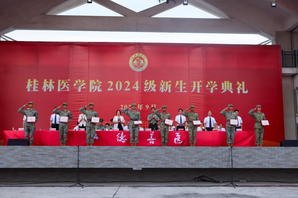 9月22日上午,我校2024级新生军训会操暨军训总结表彰大会在临桂校区田径运动场举行。