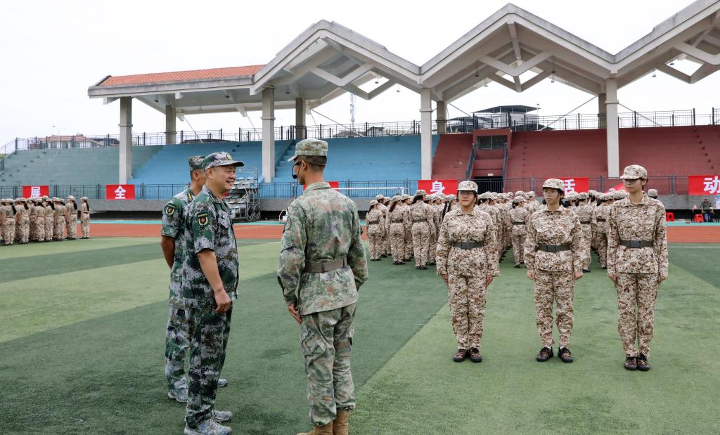 8月30日下午,学校党委常委、副校长辛懋来到2023级学生军事技能训练现场视察军事技能训练教学开展情况,并对全体军训学生与教官表示亲切慰问。