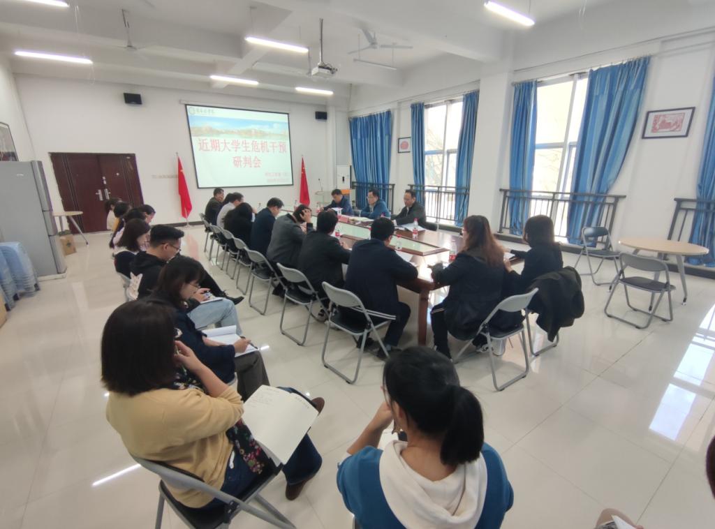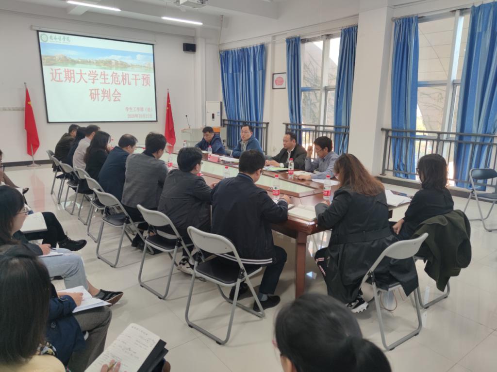 10月21日下午,学生工作部在临桂校区大学生活动中心409召开大学生危机干预研判会。副院长马献力,学生工作部(处)领导、各二级学院分管学生工作领导,全体学工办主任,心理健康教育与咨询中心全体人员参会。本次会议由学生工作部部长胡友根主持。