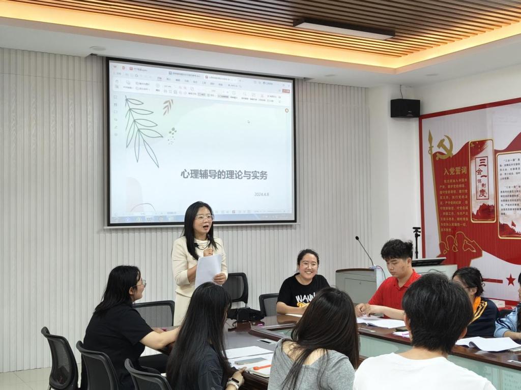 吕佳微立足学生心理健康发展需求,系统阐释了朋辈心理辅导在学生心理健康服务体系中的核心价值。她通过框架化梳理,从角色定位、服务边界、伦理规范三个维度深入剖析了朋辈导师的工作职责与准则。培训中,她聚焦实务操作层面,从理论建构与实践应用双重维度,深度解析了谈心谈话技术要领、常见心理疏导策略及自我赋能路径,特别强调共情能力培养与专业素养迭代的重要性。尤为引人入胜的是,她结合典型案例的具象化剖析,将抽象理论转化为可感知的实践图景,有效强化了朋辈导师对心理健康工作的价值认同。并通过高度还原的模拟情境,组织朋辈导师代表现场演绎心理疏导标准化流程,实现了知识内化与技能强化的双重提升。