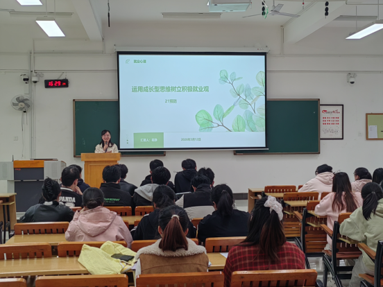 讲座中,葛静老师以“运用成长型思维树立积极就业观”为主题,鼓励同学们将个人成长与时代发展相结合,积极投身基层。她引导学生理性看待考研与就业中的挑战,摒弃“一步到位”的完美主义,以“我还在成长”的心态,从每次面试和实习中积累经验,在尝试与反馈中不断进步。
