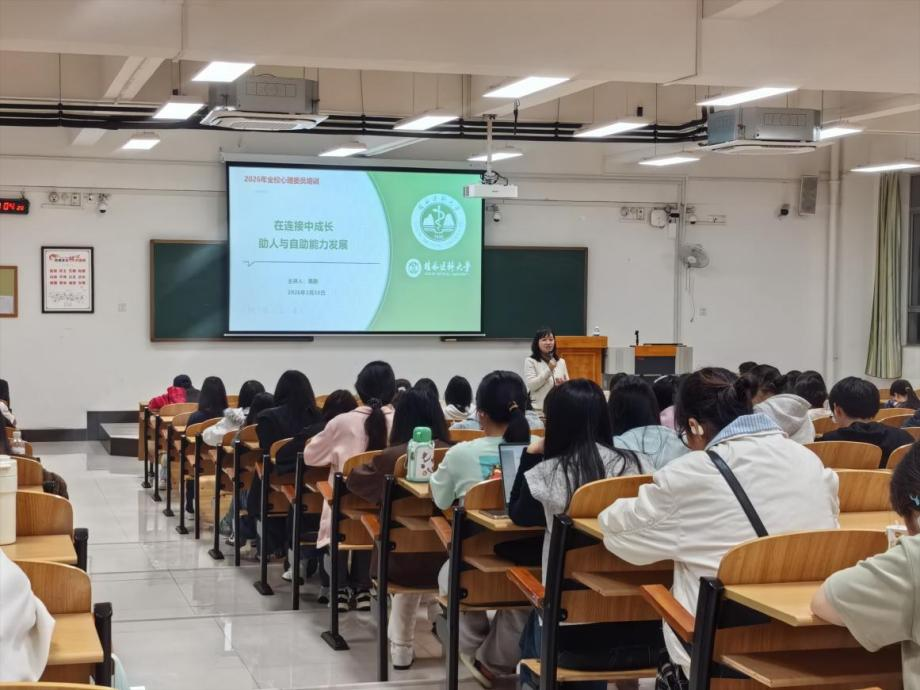 为进一步提升心理委员的岗位胜任力与心理育人实效,3月27日晚,大学生心理健康教育与咨询中心在临桂校区N304成功举办了心理委员成长专题培训——“主题班会的设计与开展”训练营。本次培训由葛静老师主持,面向全校非毕业班心理委员开展。