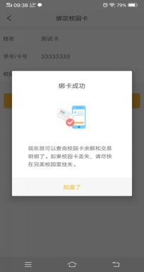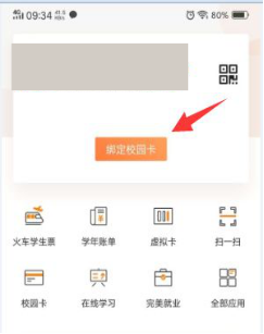 第三步:选择好学校即可登录,登录成功选择“绑定校园卡”