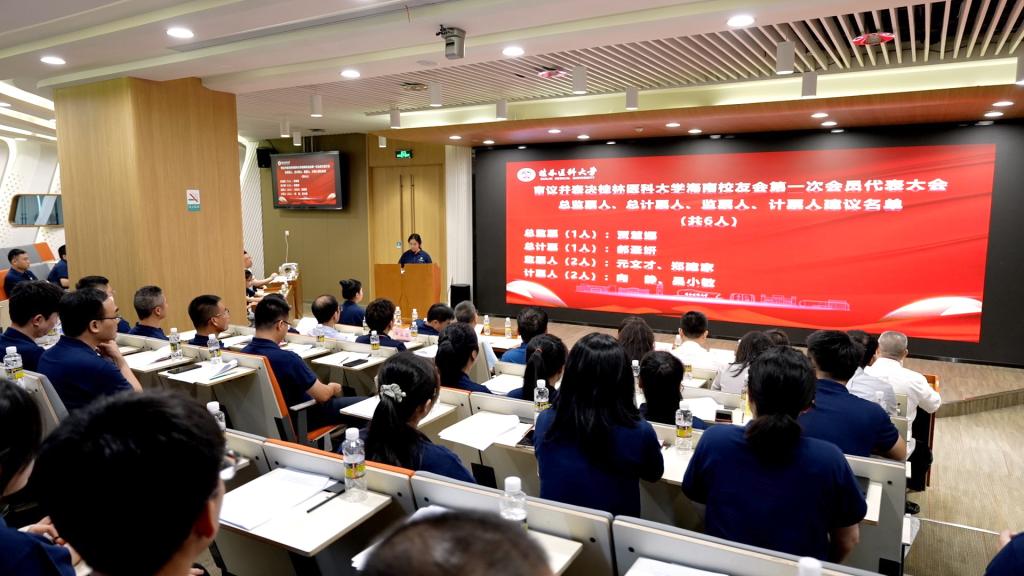 会议审议并通过了《海南校友会选举办法(草案)》《海南校友会会员管理办法(草案)》等文件,选举产生了第一届理事会、监事会成员。随后,理事会召开第一次会议,选举杨松为海南校友会首任会长。杨松回顾毕业后赴海南投身医疗事业32载的经历,感恩母校为其从医筑基。他表示将全力以赴建设好校友会,加强与母校联系,搭建多元交流平台,积极投身公益事业。
