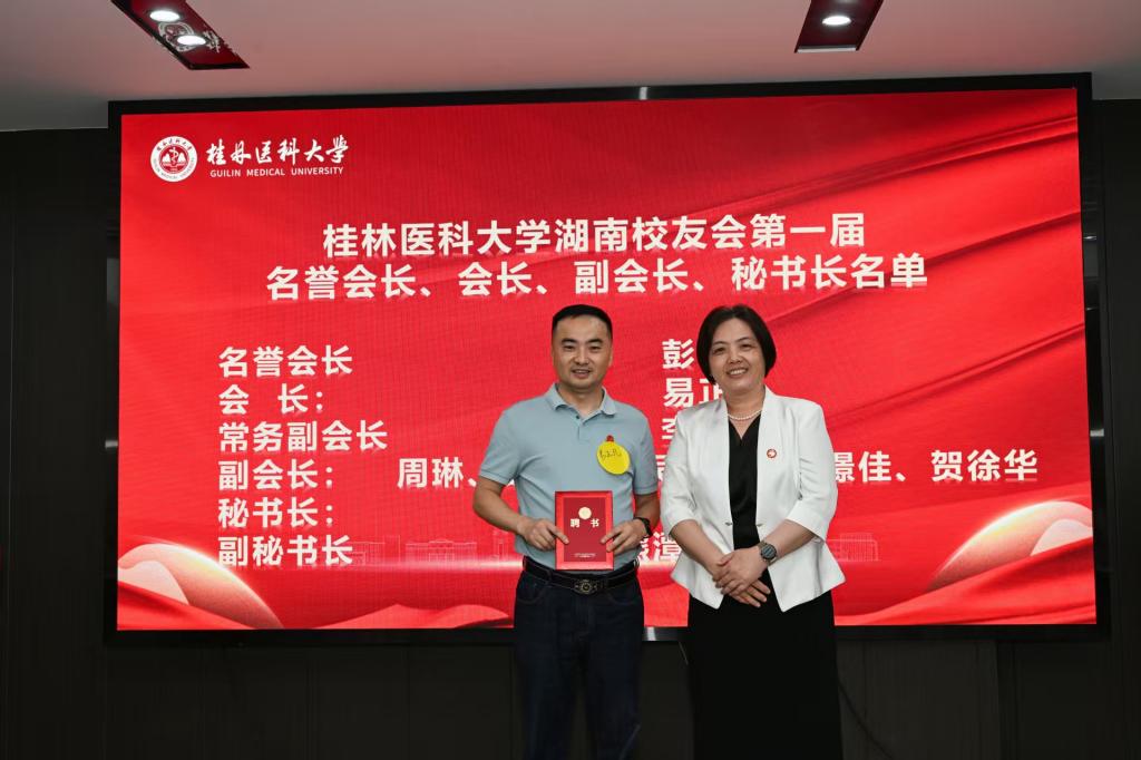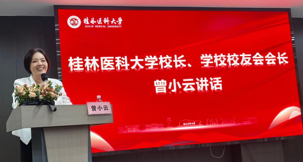 会上,曾小云对湖南校友会的成立致以热烈祝贺,对筹备工作组高效务实的工作表示赞许。她向与会湖南校友全面介绍了学校在一代又一代“桂医人”接续奋斗下取得的发展成就与建设成果。她指出,在“十四五”规划攻坚阶段,学校以战略定力推进学科建设与内涵式发展,博士点建设及更名大学目标的圆满达成,这两大里程碑式跨越标志着学校发展实现质的跃升,为后续高质量发展筑牢根基。她对湖南校友会提出三点期望:一是秉承“服务校友、服务学校、服务社会”宗旨,成为传递母校关怀的情感纽带、联络校友的枢纽中枢、校地交流合作的共赢平台,助力校友成长成才;二是秉持湖湘儿女“敢为人先”的创新精神,打造多元赋能的校友活动体系,汇聚校友智慧、整合校友资源、凝聚校友合力,精准服务湖南校友发展需求;三是以90周年校庆为契机,传承弘扬校训精神,情系三湘大地、心系母校发展,共建共享母校发展新成果。