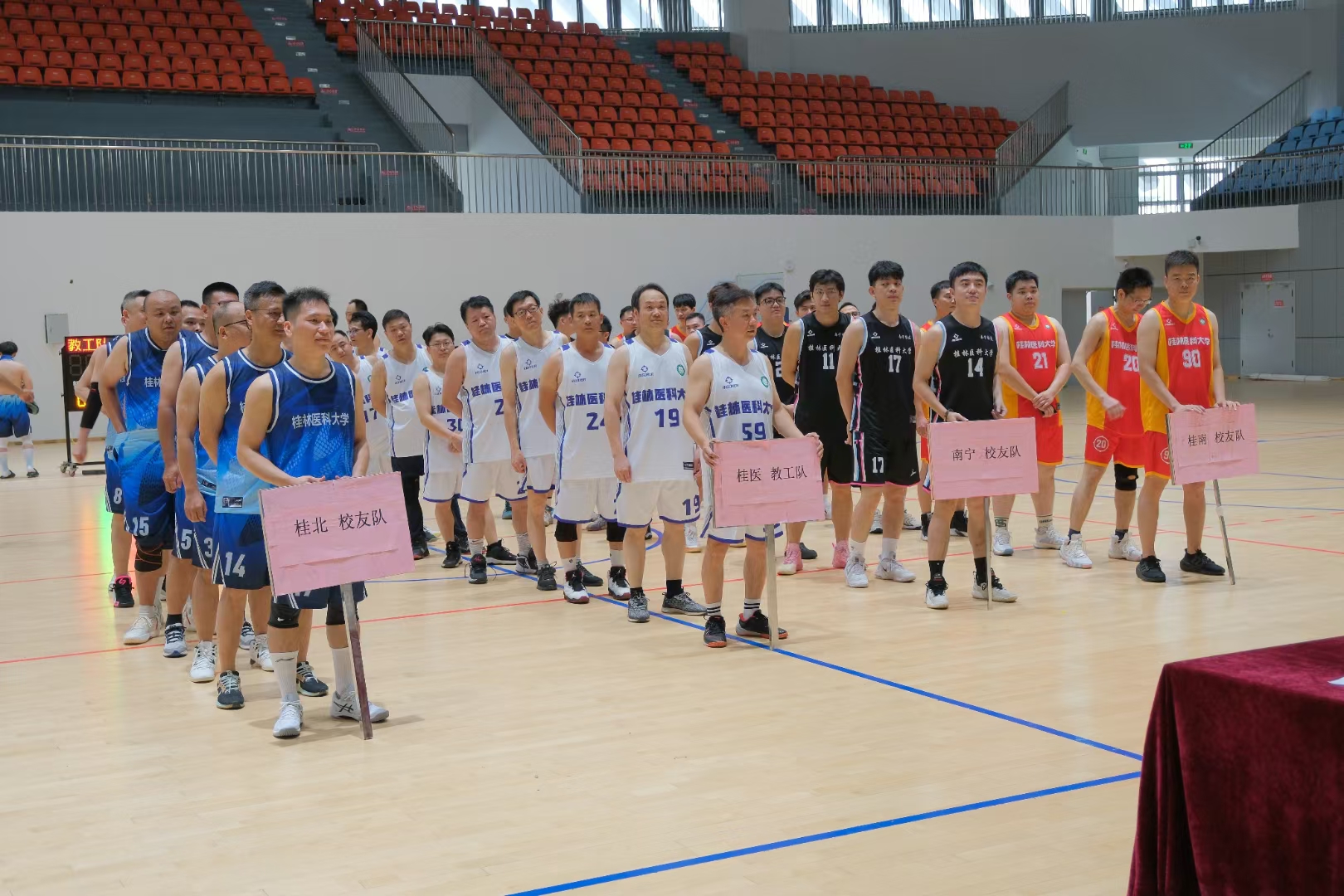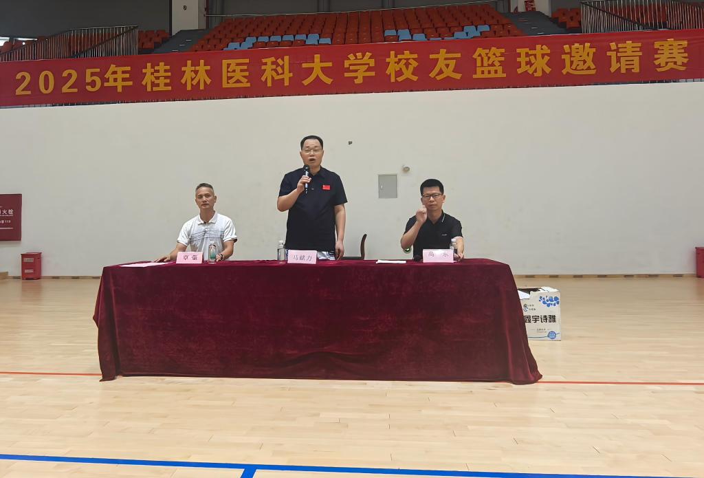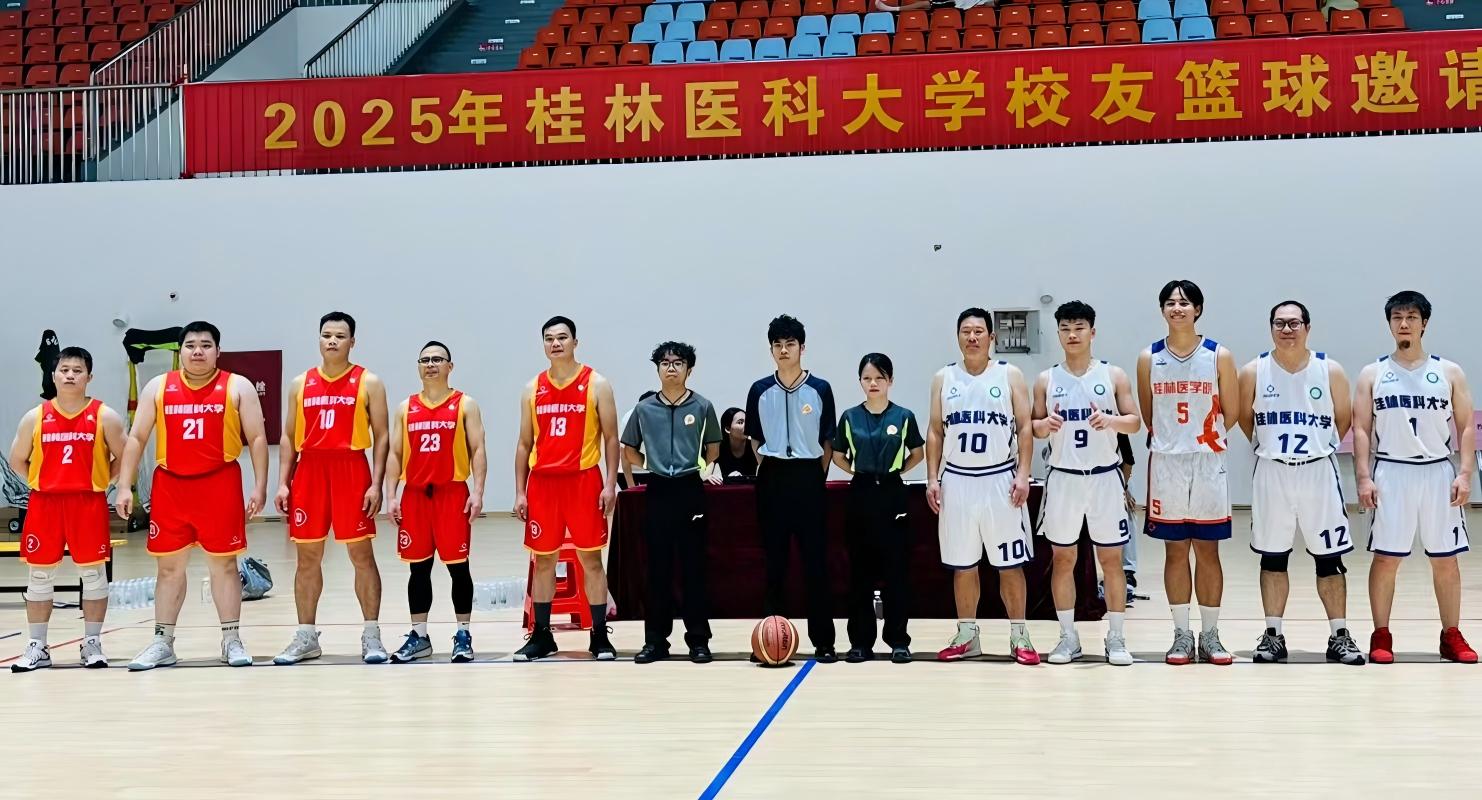 盛夏六月,相聚桂医。6月21日,由校友会与体育部联合主办的桂林医科大学2025年第一届校友篮球邀请赛在学校体育馆举行。来自南宁、柳州、玉林、贵港、梧州、桂林等地的70余名校友重返母校组队参赛。校党委书记马献力现场致辞并参加比赛活动。