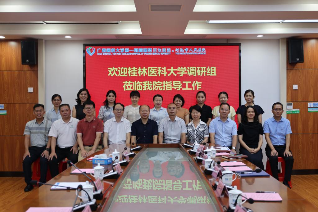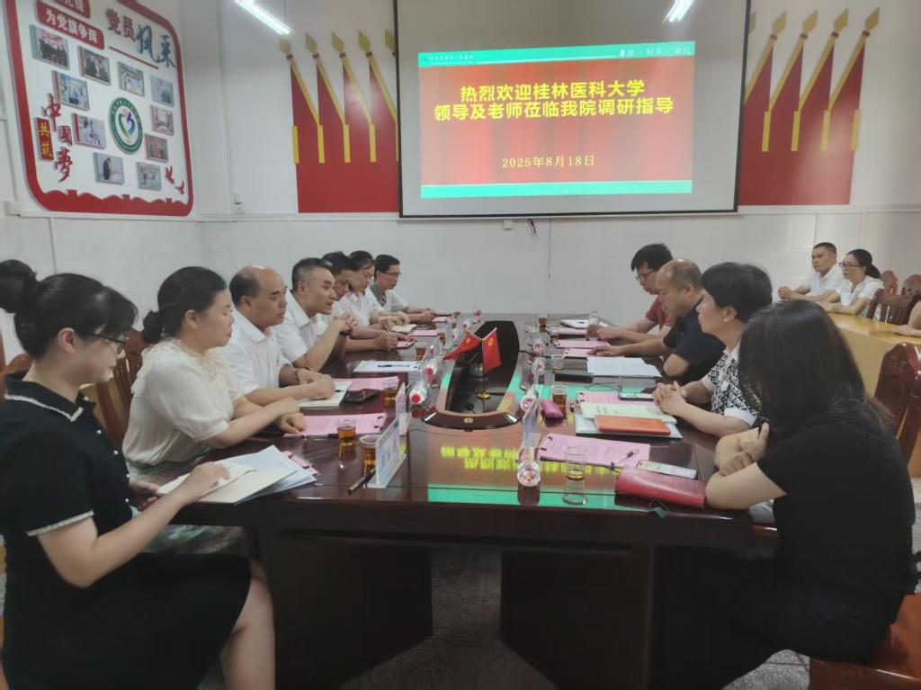 调研团队深入平南县第二人民医院、平南县同安骨科医院、平南县人民医院、桂平市中医医院、桂平市人民医院、桂平黎明医院、武宣县人民医院、柳江区人民医院、柳江区进德镇卫生院、河池市第一人民医院、环江县人民医院、南丹县人民医院、巴马县中医医院、都安县人民医院、都安一宇医院、都安一宇慈沐爱医院、都安天美口腔门诊、河池市中医医院、河池市第三人民医院、河池市人民医院、柳城县沙浦镇卫生院、柳城县人民医院等多家市、县、乡镇级医疗机构,走访临床一线校友,了解医院学科建设、人才梯队等情况。每到一处,均召开座谈会,与医院领导、职能科室及校友代表交流。