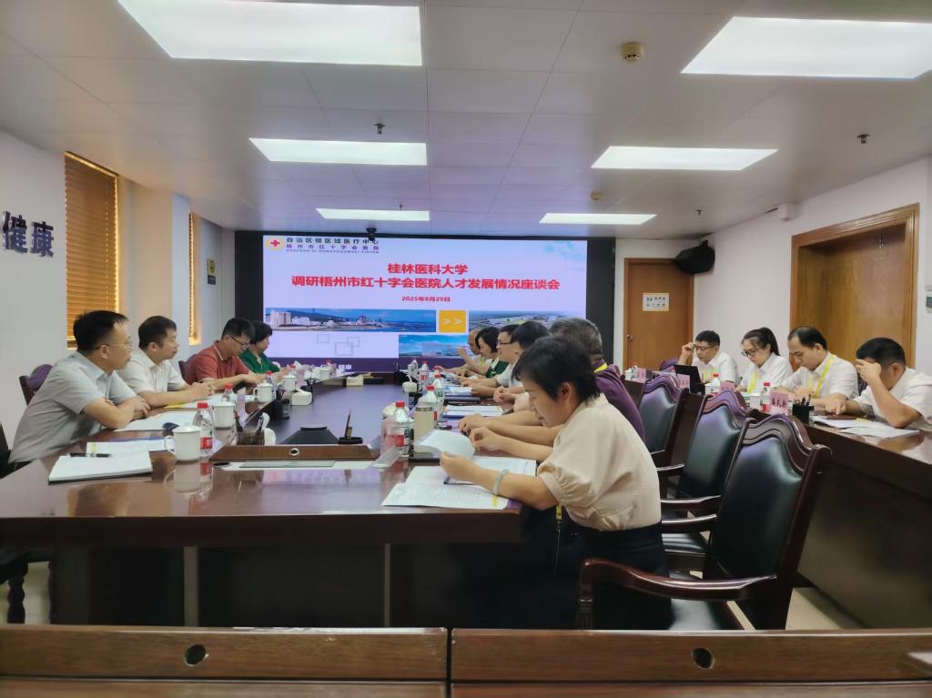 走访调研的次日行程围绕深化校院协同展开。上午走访桂东人民医院,双方就临床教学基地建设、实习生培养管理等工作交换意见,深入听取校友对学校高质量发展的意见和建议;下午在梧州市红十字会医院召开专题座谈会,来自梧州市人民医院、市第二人民医院、藤县人民医院、岑溪市人民医院等16家医疗机构的桂医校友代表齐聚一堂。会上,陈健副校长向校友们介绍了学校近年来的发展成就,认真倾听校友们在职业发展中的经验与建议,鼓励大家持续发挥专业所长,为地方医疗事业贡献桂医力量,校友们也纷纷表达了对母校的感恩之情,期待进一步加强与母校的联系合作。 走访调研的第三天上午,工作组专程走访岑溪市人民医院。作为今年2月刚评审通过的国家三级甲等综合医院,该院多项工作走在区域前列。工作组实地考察医院新院区建设、重点专科发展情况,与院方及校友代表就三甲医院建设经验、校院人才联合培养等内容深入探讨,为后续合作奠定坚实基础。 此次梧州之行,不仅拉近了学校与校友的距离,更搭建了校院合作的新桥梁。桂林医科大学将以此次走访为契机,持续加强与地方医疗机构的联动,推动医学教育、临床实践与科研创新深度融合,为培养更多高素质医学人才、服务地方卫生健康事业发展注入新动能。