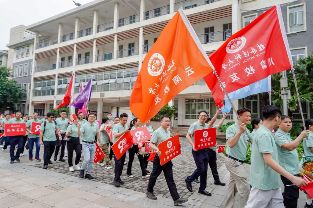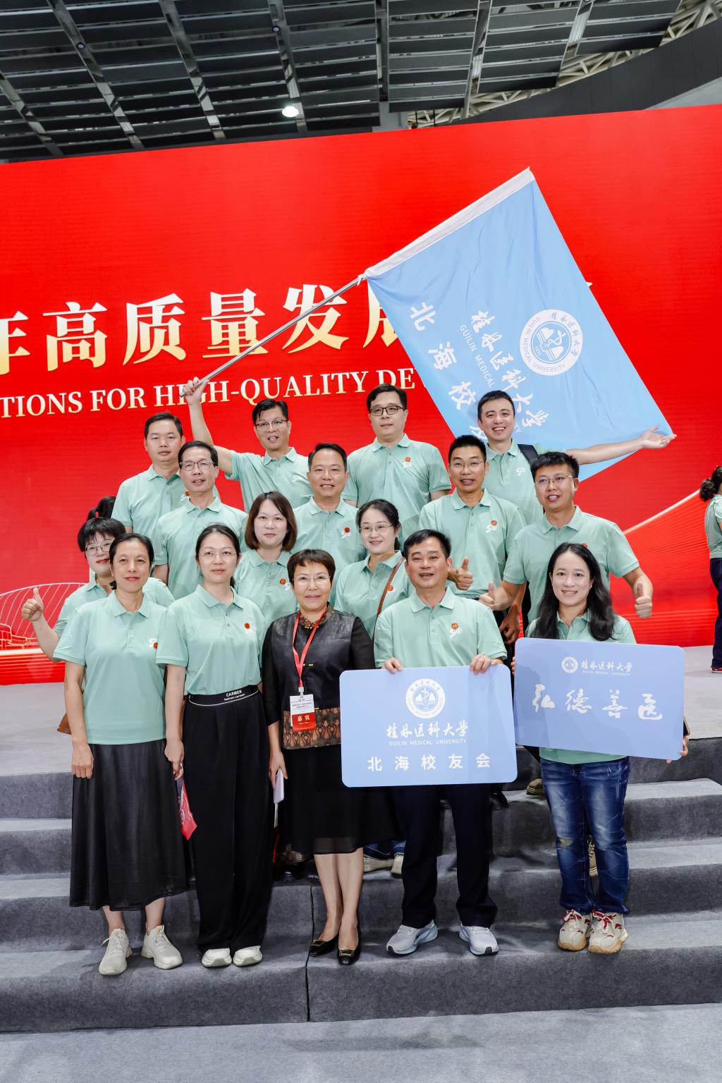 在主会场庄重而热烈的高质量发展大会上,校友代表团统一着装、精神抖擞,展现了桂医人的凝聚力与风采。大会结束后,各代表团分区域合影留念。镜头定格下了一张张灿烂的笑脸,也记录下了跨越地域与年代的同窗情、师生谊。