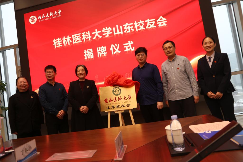 1月18日上午,桂林医科大学山东校友会成立大会暨第一次会员代表大会在齐鲁制药生物医药产业园举行。我校校长曾小云率队参会,并为山东校友会揭牌,为新一届理事会成员颁发聘书。