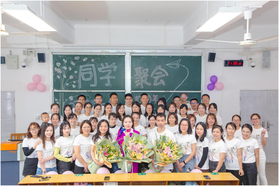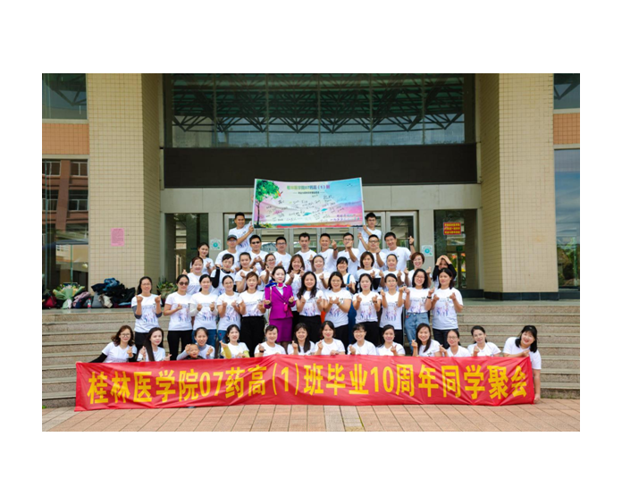 金秋十月桂花飘香,毕业十年校友返校,2020年10月17日,07届药学高职一班于桂林医学院东城校区CR305教室举办毕业十周年聚会。桂林医学院校友办主任魏航,口腔医学院党总支副书记李媛,药学院有机化学教研室李芳耀老师,大学生外语教研室李荣太老师以及各地返校的44名校友参加了本次聚会。17日上午,微风轻拂,校友聚会在满心期待中拉开帷幕。师生齐聚一堂,热情相拥,朗朗笑声让精心布置的教室更显温馨。签到就座后,师生们依次发言交流,表达对过往时光的追忆及对未来的憧憬。三位嘉宾老师向同学们传递了暖心问候。校友办主任魏航表示:“当你们进入桂医求学的那天起,你们已经与桂医血脉相连,因为你们拥有一个共同的名字--桂医人,这是一种精神的传承,更代表着一份责任与担当。无论你们身在何处,你们是母校永远的牵挂,母校永远是你们的精神家园!”班级辅导员李媛感慨十年光阴流逝之快,同学们读书的趣事仍历历在目。随后,老师向同学们介绍学校十年间的发展,同学们亦为母校的进步而感动和自豪。