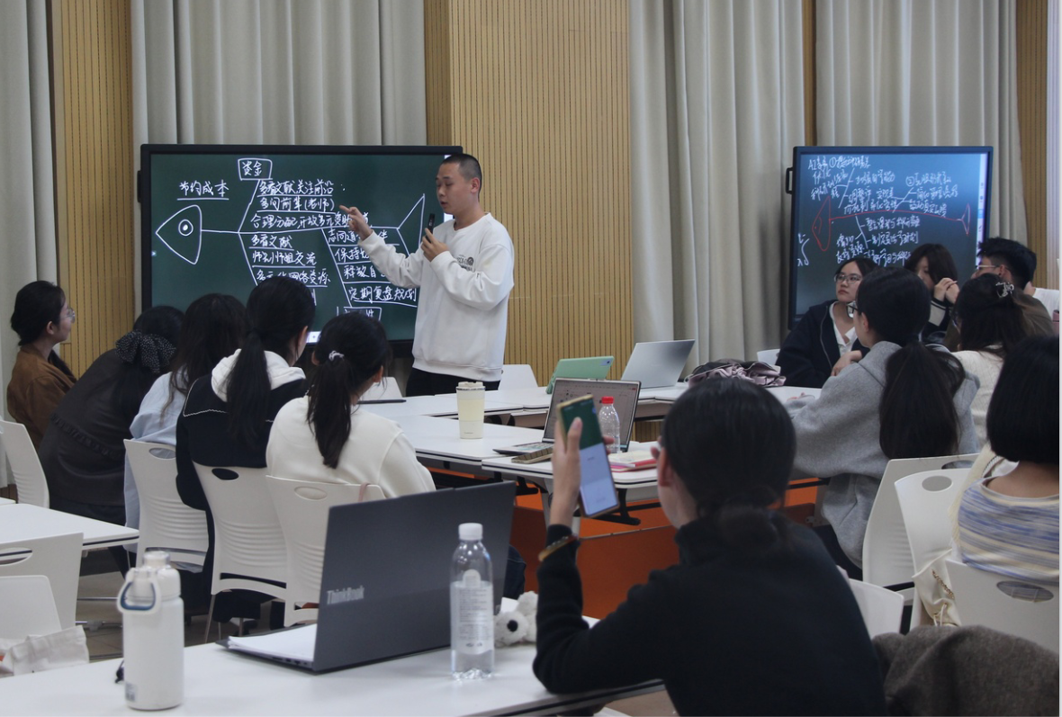 付贺慧老师围绕“问题、团队、学习、行动”四大核心要素,系统阐述了行动学习的理论内涵。随后,聚焦“如何提升研究生科研创新能力”这一主题,她引导同学们运用“头脑风暴法”展开集中研讨。各小组围绕“科研选题方向、资源整合方式、团队协作机制”等议题踊跃发言,提出了“建立跨学科文献共享平台”、“以临床需求为导向反推科研课题”、“定期复盘实验数据”等提升科研创新能力的可行路径,现场气氛热烈,思维火花相互碰撞。一位参与研讨的研究生感慨道:“原来科研创新不能孤军奋战,而要依靠团队协作的力量和以问题为导向的行动学习力,这样才可能实现关键突破。”