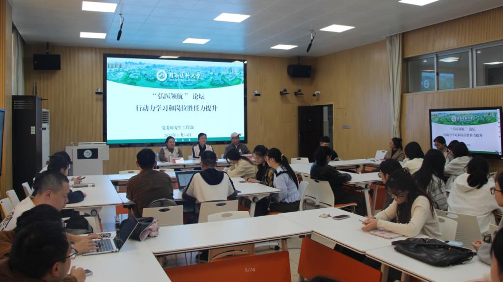 为加强研究生学风建设,提升研究生实践创新能力,11月14日下午,党委研究生工作部在临桂校区药学楼2108智慧教室开展“弘德善医”大讲堂系列主题教育活动--行动力学习赋能研究生科研创新能力活动。活动特邀中共崇左市委党校付贺慧老师担任主讲,党委研究生工作全体教师以及六十余名研究生代表参与了此次活动。