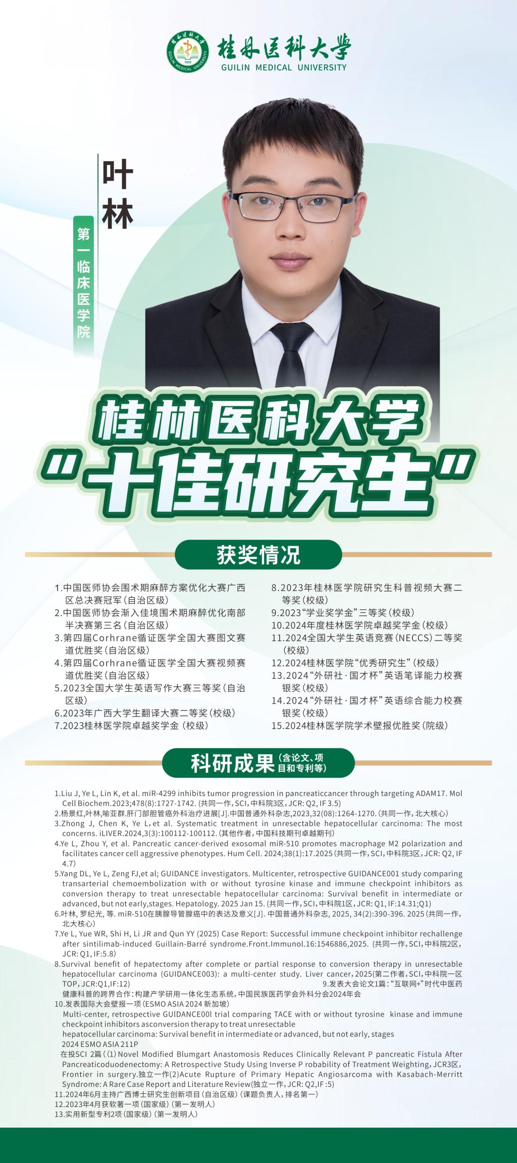 桂林医科大学2025年“十佳研究生” 风采展----临床医学院2023级临床专博1班 叶林