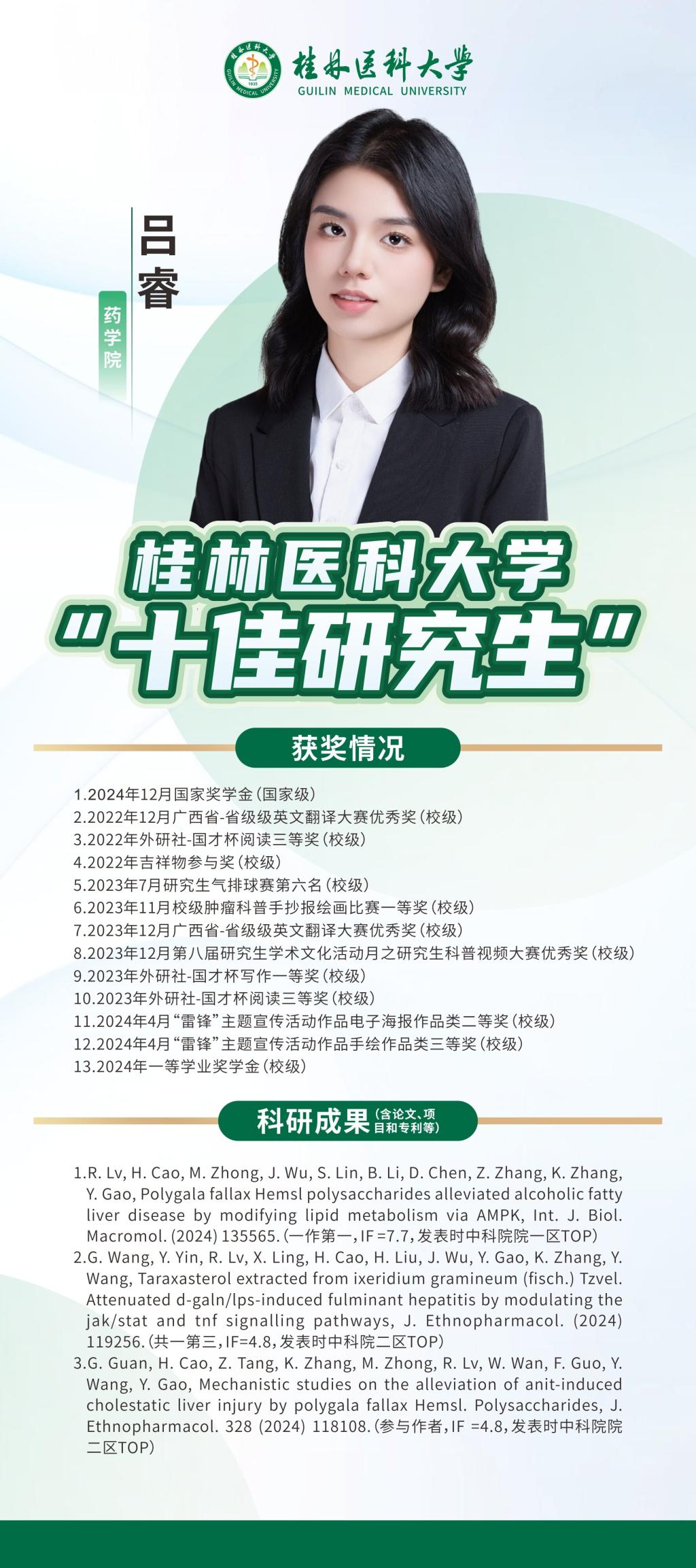 桂林医科大学2025年“十佳研究生” 风采展----药学院2022级药学专硕班 吕睿