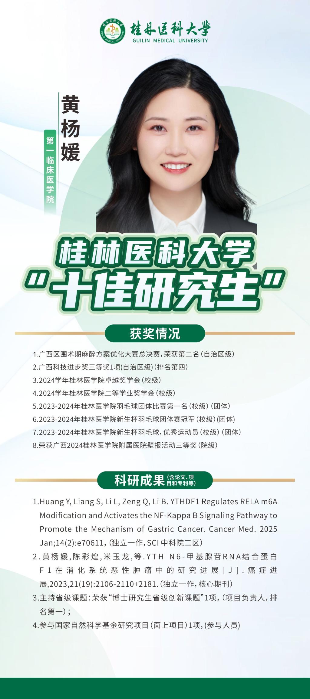 桂林医科大学2025年“十佳研究生” 风采展----第一临床医学院2023级专博1班 黄杨媛