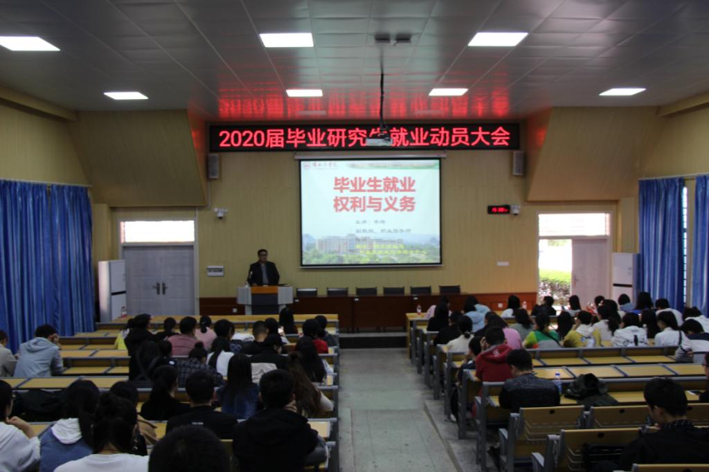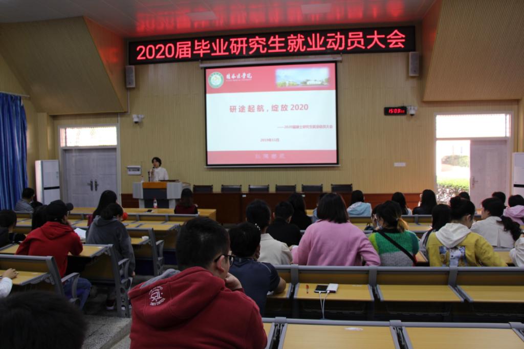 为进一步帮助2020届毕业研究生认清就业形势,把握就业机会,实现顺利平稳就业,11月8日下午3点,2020届硕士研究生就业动员大会在东城校区CR101教室顺利召开。研究生学院党委书记肖湘君、研究生学院院长简洁、学校就业指导中心主任李琦、各毕业班辅导员及2020届硕士毕业研究生参加了本次大会,会议由肖湘君主持。