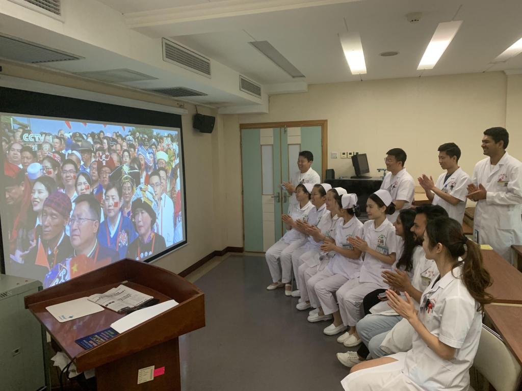 观看过程中,大家激情满怀、深受鼓舞、畅谈发展,热议直播盛况,不时鼓掌助兴,一起分享着举国同庆的喜悦,感受着与国同欢的情怀,深刻体察着今日中国的军威国魂,共同见证着伟大祖国的繁荣富强。