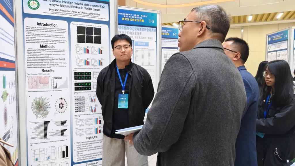 根据赛制安排,37名参赛者依据论文研究方向(基础研究、临床研究、人文社科医学相关)被随机分为三个小组,在三个分赛场同步进行角逐。竞赛采用壁报展示与现场答辩相结合的形式,每位参赛者拥有5分钟时间精炼阐述其研究内容与创新点,并接受评委专家3分钟的现场提问。评审专家组从研究内容的科学性与创新性、参赛者的表达能力、壁报制作的专业性与美观度以及现场表现等多个维度进行综合考评,确保评审过程的科学、公正与公平。 比赛现场气氛紧张而热烈。参赛研究生们准备充分,精神饱满,围绕各自的研究课题,以清晰的逻辑、流畅的表达和精心设计的壁报,生动展示了其在医学前沿领域的探索与发现。评委专家们的提问精准深刻,点评专业中肯,不仅考察了参赛者的临场应变能力,更启发了其后续研究的思路。整场竞赛充分展现了当代医学研究生严谨求实的科学态度、勇于创新的探索精神以及良好的学术风貌。 经过一上午的激烈角逐,评委组依据评分结果合议,最终评选出一等奖3名、二等奖6名、三等奖9名及优秀壁报奖19名。