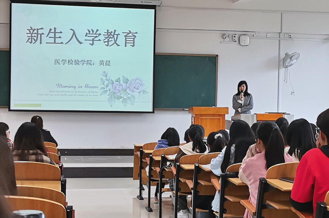 为了让2020级新生树立正确的人生观、价值观、世界观,合理统筹规划大学生活,为今后步入社会奠定坚实基础。10月19日下午,医学检验学院在临桂校区N202教室开展2020级新生入学教育,医学检验学院党委书记、院长李云秋,医学检验学院党委副书记黄晨,2020级辅导员黄艳芸以及2020级医学检验技术本科班全体新生参加此次会议。