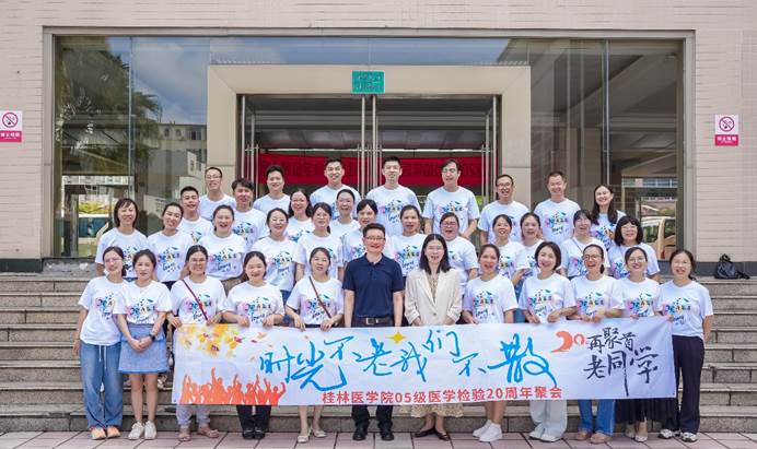 2025年8月2日,桂林医科大学2005级医学检验专业40余名校友从全国各地重返母校,在乐群、东城、临桂三校区开展“青春不散场·友情永续航”主题聚会活动。检验与生物技术学院党委书记高进涛、副院长陈火英等学院代表出席活动,与校友们共叙师生情谊,见证学校发展。