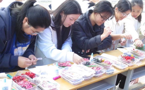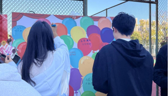 在“匠心绘感恩,卡片载温情——明信片DIY”环节,同学们亲手绘制明信片,以色彩与文字表达对家人、朋友的感激之情;“感恩有声,墙暖人心——爱心墙寄语”环节中,大家在心形墙上书写感谢与祝福,将情感凝于笔端,传递温暖。