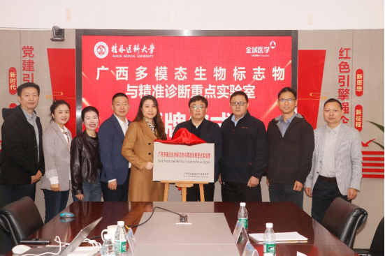 12月6日,桂林医科大学携手广西金域医学检验实验室共建的自治区重点实验室举行揭牌仪式。为积极响应《“健康中国2030”规划纲要》关于推动区域高发疾病早筛早诊的战略部署,结合《“健康广西2030”规划》,聚焦肿瘤早筛、遗传罕见病、跨境传染病等广西高发疾病的防控需求,桂林医科大学牵头整合多方优势,与金域医学等行业龙头企业共建并获批了“广西多模态生物标志物与精准诊断重点实验室”。实验室将以“基础研究-技术开发-临床转化”贯通为创新体系,铸就校医企深度融合,力争成为推动区域精准医学发展的重要引擎。