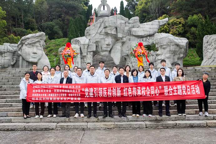 为深化党建引领,推进校企协同,3月28日,桂林医科大学检验与生物技术学院教工第一党支部、教工第二党支部,联合桂林医科大学第一附属医院检验科党支部、第二附属医院中心实验室检验科党支部、桂林优利特集团技术生产党支部,共同开展“党建引领医检创新 红色传承校企同心”联合主题党日活动。