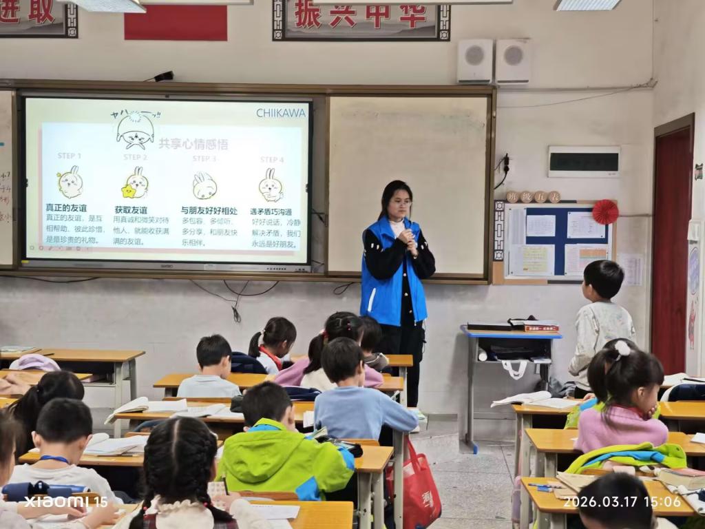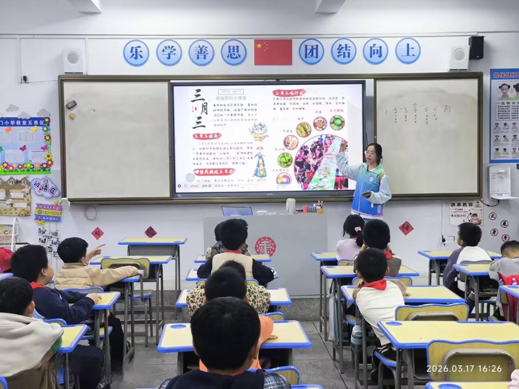 药学院学生会组织志愿者走进榕门小学,面向一、二年级约300名学生开展主题宣讲。一年级以“学习雷锋好榜样”为主题,通过动画片、故事讲述和儿歌学唱帮助学生理解雷锋精神;二年级结合广西“三月三”传统节日,借助绣球、五色糯米饭模型及中药小视频,介绍壮乡民俗与中医药文化,学生参与度高。