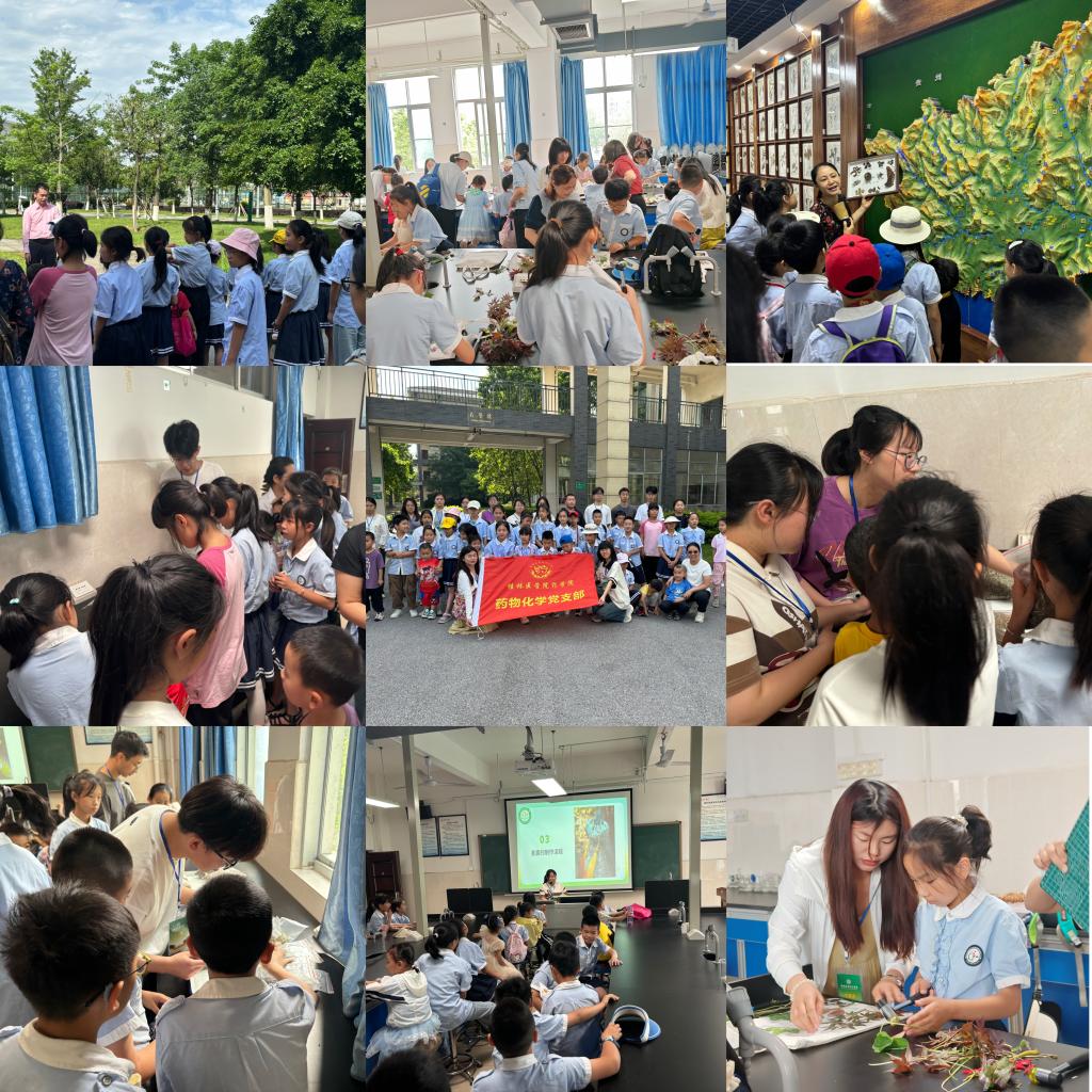 在科普环节,两个支部的师生党员志愿者分别结合专业特色,通过道地药材产区讲解、展示中药与壮瑶药特色药材、观察形态各异的浸制标本、药物传递系统讲解、生活化场景与植物化学物质科普相融合等多种方式让孩子们切身感受中医药文化的独特魅力,激发他们对传统医药文化的兴趣与传承意识。